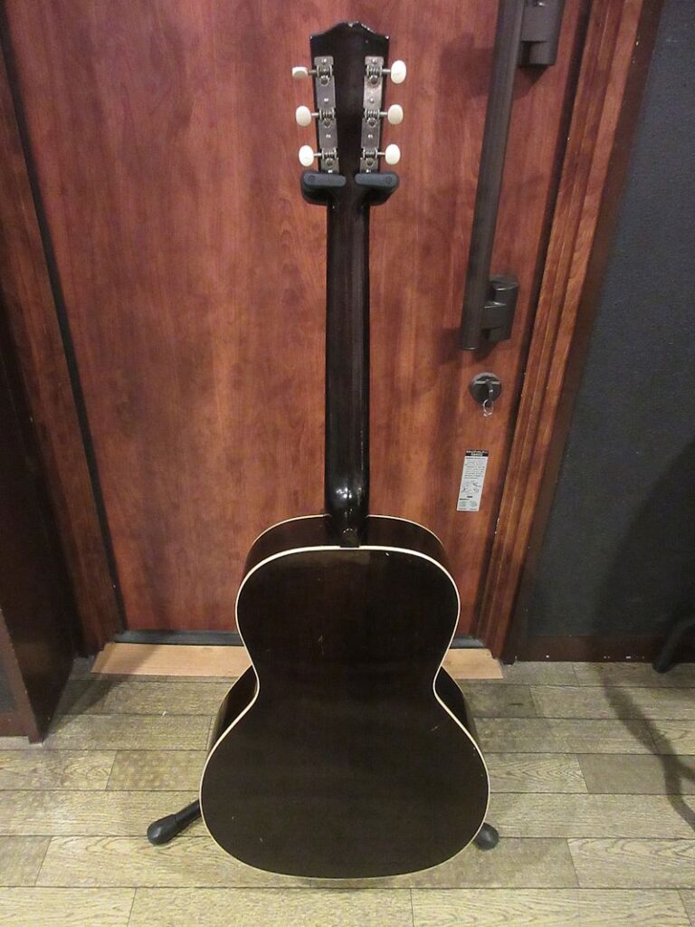 1930年代初頭、L-1モデルの後継機種として登場したL-00モデル。ピックガード付きが標準仕様となり、小ぶりでありながら胴厚のあるボディーの豊かな響きで人気を博し、後継機LGモデルの登場まで生産が続けられました。本機は1937年製のL-00、近年Gibson Custom Shopから発売されたLegendシリーズでもモチーフとなった年式の個体です!約44.5mm幅のナット幅を持ったVシェイプネック、流石30年代、と唸らされる軽量なボディー。ブラックの色目が強いサンバーストの個体が多い中、名機Nick Lucus Modelのアルゼンチングレーカラーを想起させるような、やや淡いサンバーストカラーが雰囲気抜群の1本です!コンディションは素晴らしく、近年中々お目にかかれない、オリジナルフィニッシュでクラックフリーの個体です。この時期のスプルーストップ、マホガニーサイド&バックのGibsonは正に鉄板、トルク感のある太いトーンで軽いタッチでしっかり抜けてくれる抜群のサウンド。ネックコンディションも大変良く、12フレット上の弦高は6弦で約2.3mm、1弦で約1.8mmと弾きやすい弦高でセットアップされております。近年めっきり流通量が減少し、その中でも良いコンディションの物は非常に入手困難となっております。コンディション、ルックス、サウンドの3拍子揃った一生物の戦前モノ、是非ご検討下さい♪チップボードケース付属。