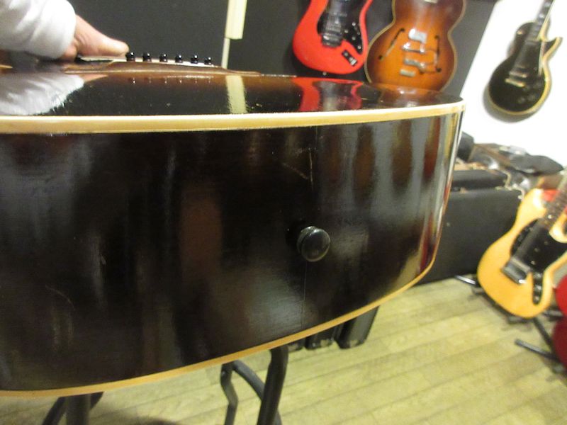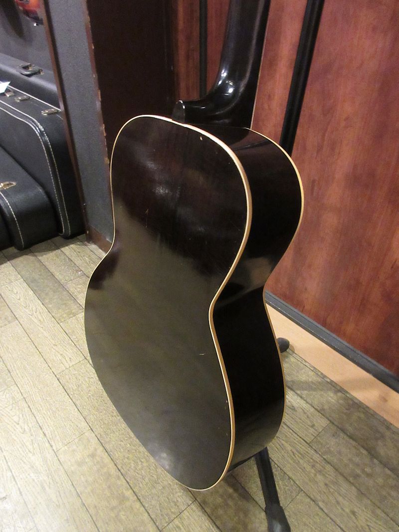 1930年代初頭、L-1モデルの後継機種として登場したL-00モデル。ピックガード付きが標準仕様となり、小ぶりでありながら胴厚のあるボディーの豊かな響きで人気を博し、後継機LGモデルの登場まで生産が続けられました。本機は1937年製のL-00、近年Gibson Custom Shopから発売されたLegendシリーズでもモチーフとなった年式の個体です!約44.5mm幅のナット幅を持ったVシェイプネック、流石30年代、と唸らされる軽量なボディー。ブラックの色目が強いサンバーストの個体が多い中、名機Nick Lucus Modelのアルゼンチングレーカラーを想起させるような、やや淡いサンバーストカラーが雰囲気抜群の1本です!コンディションは素晴らしく、近年中々お目にかかれない、オリジナルフィニッシュでクラックフリーの個体です。この時期のスプルーストップ、マホガニーサイド&バックのGibsonは正に鉄板、トルク感のある太いトーンで軽いタッチでしっかり抜けてくれる抜群のサウンド。ネックコンディションも大変良く、12フレット上の弦高は6弦で約2.3mm、1弦で約1.8mmと弾きやすい弦高でセットアップされております。近年めっきり流通量が減少し、その中でも良いコンディションの物は非常に入手困難となっております。コンディション、ルックス、サウンドの3拍子揃った一生物の戦前モノ、是非ご検討下さい♪チップボードケース付属。