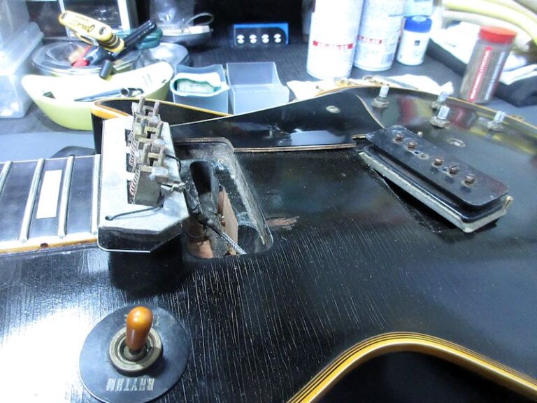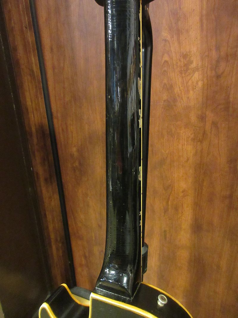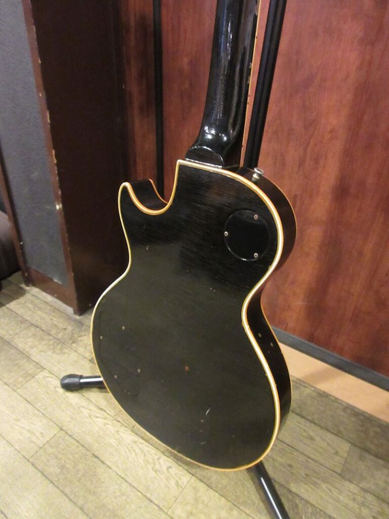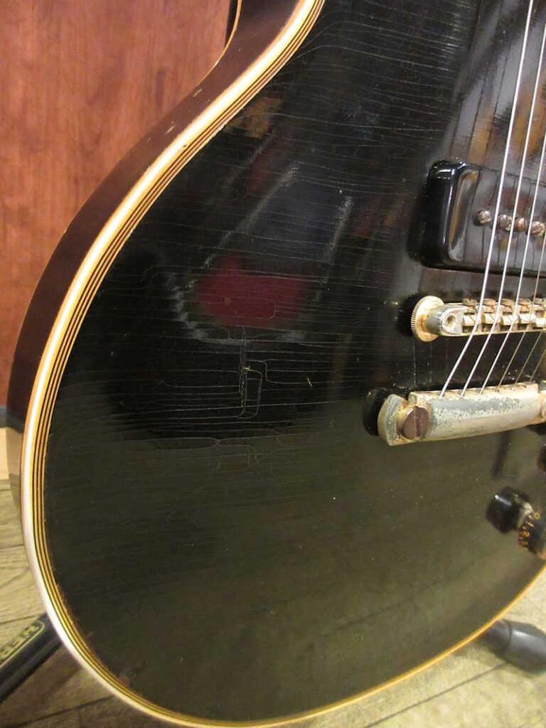 1952年に誕生したGibson初のソリッドボディーエレクトリックギターであるLes Paul Model。好調なセールスに後押しされ、Gibsonはシリーズ最上位機種である「Les Paul Custom」の発売に踏み切ります。本機はその最初期生産個体にあたる1953年製の個体!当初生産されたカスタムには、社長であったテッド・マッカーティー曰く、「美しさを損ねる」との理由からシリアルナンバーがスタンプされておらず、その仕様を持った個体は極少数、かつ初期生産個体だけが有するスペックであることから、幻の1本とも言える存在です。当店では先般同時期の個体が入荷いたしましたが、希少性から言ってももはや奇跡に近い出来事であり、盛り無しでスタッフ感涙の再邂逅です…今回入荷の個体はノンシリアル、POT Dateは53年23週、ゴールドメッキされた薄型のアルミテイルピース、黒のバレルノブ、やや幅広なネック幅など初期生産個体だけが持つスペック。弾きこまれた個体でリフレットが施され、プレイにより生じた指板ディボットは綺麗に埋められております。全体にビッシリとウェザーチェックが覆い、貫禄たっぷりのルックスですが、パーツオリジナリティーは高く、50年代カスタムらしいリッチで芳醇なトーンは言わずもがな、中々体験できないレベルのワンダフルサウンド!この時期の個体はほぼ出回ることがなく、入手の機会は極めて限られておりますのでこのチャンスお見逃しなく!かなりくたびれておりますが、オリジナルハードケースが付属致します。