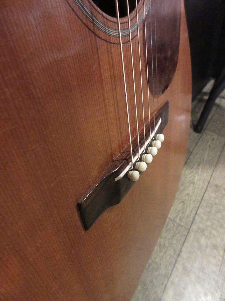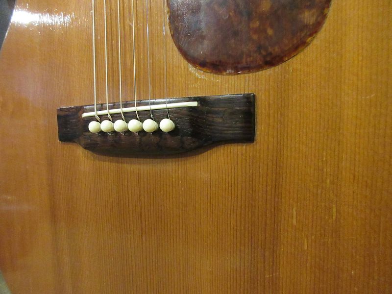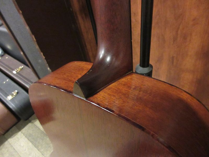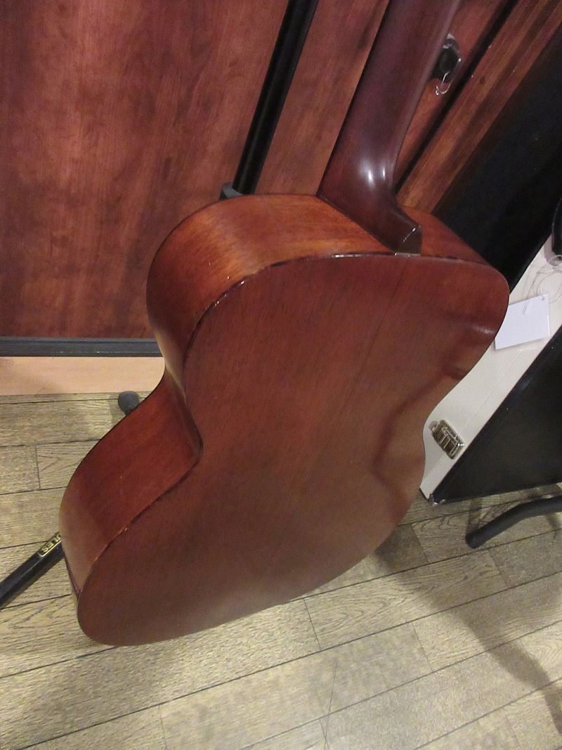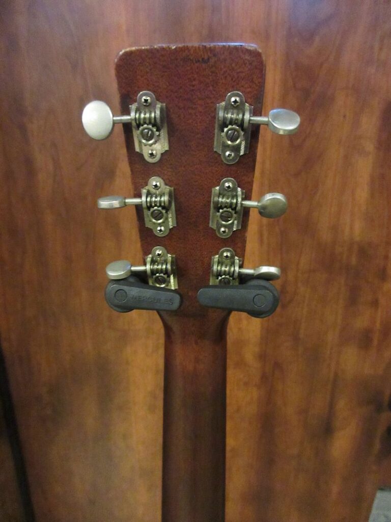 Martinギターの中でも歴史の古い000サイズは1902年に誕生し、オーケストラモデル最大のボディーサイズを持つ機種でした。抱えやすいサイズがもたらす適度な箱鳴りと、トーンバランスの良さには定評があり、ローズウッドサイドバックの28、マホガニーサイドバックの18、共に現在でも非常に人気の高いモデルです。本機は1957年製の000-18、この時期特有のトーティス柄ピックガードが特徴的な1本。マホガニーボディーのヴィンテージマーティンならではの軽量ボディー、インストゥルメンタルや歌もののバッキングなどにジャストフィットするバランスの良い鳴り感が心地よく、素朴で温かみのあるトーンは当時の良質な木材の恩恵をしっかりと感じさせてくれます。過去に全体が極薄くオーバーラッカーされ、古い時期にブリッジ両端がネジ止めされていた痕跡やエンドピンの折れなどは見受けられますが、それだけ歴代オーナーに弾きこまれ、長きにわたり愛されてきた証とも言えるでしょう。フレット・ナットは交換され弦高も適正、演奏性もしっかり決まっております。40年代はもとより50年代の000もいよいよ出物が少なくなってきた昨今、このあたりの年式でお探しの方は是非チェックしてみてください♪ハードケース付属。