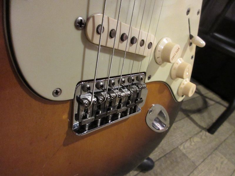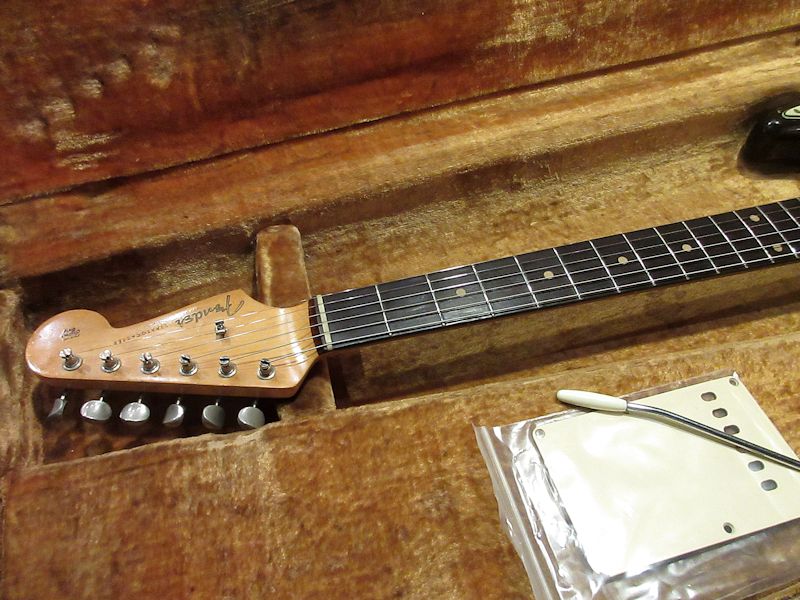 前年1959年からそれまでのメイプルワンピースネックからローズウッド指板にモデルチェンジしたStratocaster。1962年途中までのスラブ貼りのローズウッド指板を持つ個体は、充実したローミッドのトーンを有し、長いStratocasterの中でも1、2を争う人気を誇ります。今回入荷の1本は1960年製、この時期特有の所謂チョコレートサンバーストカラーに経年感が相まって抜群のルックスに仕上がった個体!一時期アッセンブリごと別のものに載せ替えられていた時期があったようで、追加のビス穴と(現在は綺麗に埋められております)、導電塗料のリムーブされた痕跡が見られますが、現在はオリジナルのアッセンブリに戻されております。POT Dateは59年46週目、ボディーデイトは60年2月。スラブ貼りの指板にオリジナルブラックボビンの組み合わせはやはり強烈!長年弾き込まれたことによる反応の速さ、絡みつく色気のある倍音感。この時期のストラトがTop of Topと評価するプレイヤーが多いことも納得のサウンドです!フレット・ナットもオリジナルをキープしており、トータルコンディション良好な個体です♪前述のイシューがある為、相場よりお買い得感のあるプライスとなっておりますので、この機会に是非ゲットなさってください!ウェイトは軽量な3.29kg、オリジナルブラウンドトーレックスケース付属。
