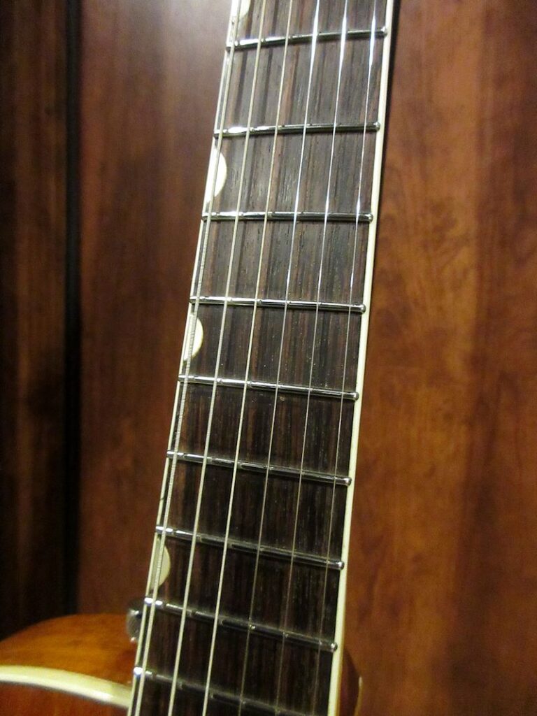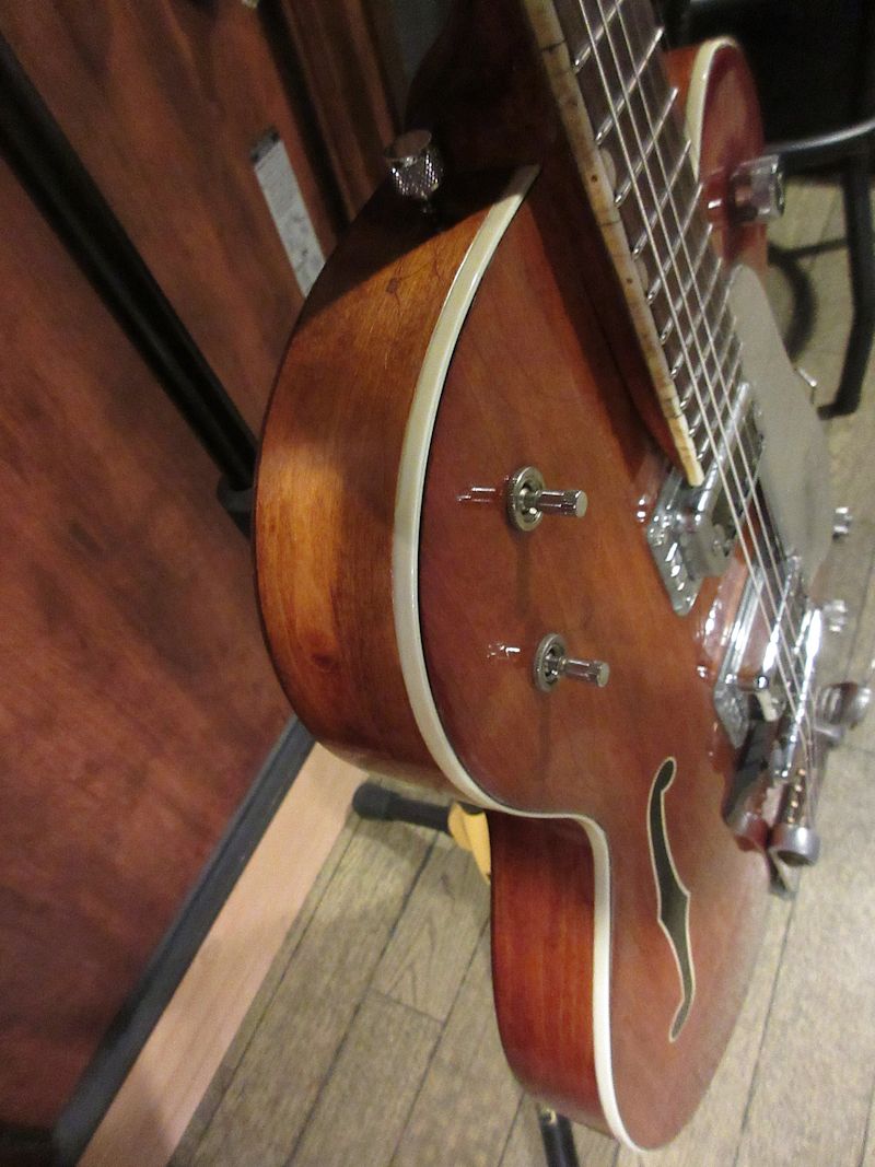 カントリー・ロカビリーミュージックの名ギタリストであるチェット・アトキンス氏の名を冠し、1958年に発表されたTennessean。当初はフィルタートロン1基を搭載したモデルでしたが、その後モデル名はそのままにモデルチェンジを行います。今回入荷の個体は1964年製、Hi-Lo Tronを2基搭載し、ハウリング防止の為シミュレーテッドFホールを採用した仕様変更後の1本。同年式の個体は浅井 健一氏の愛機としても知られ、Gretsch社がボールドウィン社に買収される以前のモデルということもあり日本でも人気の高い年式の1本です。フレット・ナット交換済みで演奏性も非常に良く、ネックコンディションもしっかり決まっている本機。2基のピックアップの音量バランスも良く、この時期のTennesseanらしいブライトでレスポンスの良いサウンドが心地よい個体。カラーのフェイド具合も趣のある風合いで、サウンド、ルックス共にVintage Gretschらしいムードに溢れております♪是非ともお試しいただきたいナイスな64年製のTennessean、この機会に是非どうぞ!オリジナルハードケース付属。