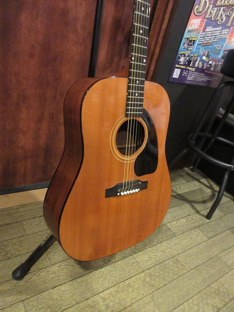 Heritageは1965年に発表され1982年まで生産されたモデルで、その木材構成から一説にはGibson社がMartinのD-28を意識して開発したとも言われています(Gibson Flat Top Acoustic Guitarはその誕生以来、Advanced Jumboなど一部の例外を除き、サイド・バック材にローズウッドを使用することは非常に稀で、メイプルやマホガニー材が主に用いられていました)。今回入荷の1本は極めて希少な初年度1965年製で、この年のみのスペックであるブラジリアンローズウッド単板をサイド・バックに使用したスーパーレアな個体!25 1/2インチスケール、スプルーストップにエボニー指板、アジャスタブルブリッジ仕様を備えたこのモデルは生産本数が非常に少なく、初年度生産の個体に出会えることは滅多にありません。鳴り方は70年以降のダブルXブレイシングのHeritageとはまったく別物で、ふくよかで分離感があり、軽いタッチでも反応のよい極上のサウンド!コンディションも非常に良く、クラックフリーでネックコンディションも非常に良い逸品です!1965年はナローピッチネックへの移行期にあたる時期ですが、本機はナット幅が約40.5mmで、やや薄めのネックグリップも相まってプレイアビリティーも素晴らしいものがあります。サップの入った美しいブラジリアンローズ材のバック材も特筆モノ、また比較的軽量なのも高ポイントです!デュアン・オールマンやキース・リチャーズも愛した名機、探して見つかる個体ではありませんので、この機会をお見逃しなく!Gibsonバッジ付きオリジナルイエローインナーハードケース付属。