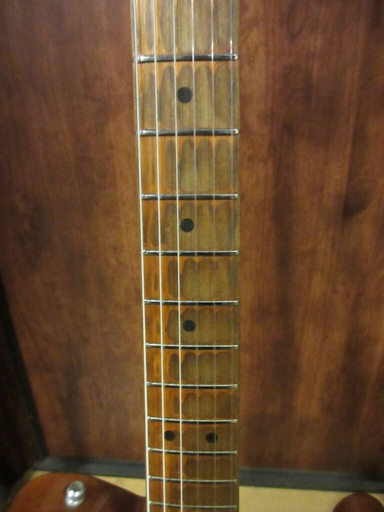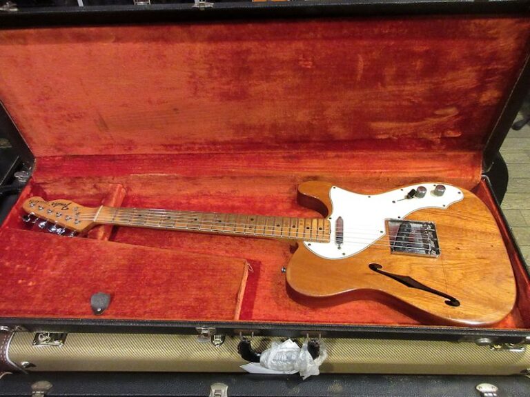 Fender社がテレキャスターラインアップの充実を求めて開発したThinline。その記念すべきファーストバージョンの1本が入荷しました。本機は初年度1968年製の個体で、マホガニーボディーに貼りメイプル指板というごく少数しか存在しないレアスペックピース!ボディーの軽量化と新たなトーンキャラクターを狙って導入されたセミホロウ構造は、ソリッドのTelecasterとは一線を画す箱鳴り感を持ち、アタックの角がほどよく丸く、奥行きのあるミドルレンジが魅力です。1970年代のワイドレンジハムバッカー搭載モデルとは異なり、より“Telecasterらしい”キレ味はそのままに、ホロウ構造ならではのふくよかさが加わった絶妙なバランスが高ポイント!特にマホガニーボディの個体はサウンド面で評価が高く人気です。リアピックアップがポッティングされ、チューナー交換歴やボリュームポットが交換など、細かいパーツチェンジはあるものの全体のコンディションはとても良く、しっかり弾かれてきた個体らしい芳醇な鳴り!ファーストバージョンの個体は市場でも年々希少性が増しており、タマ数は年々少なくなっております!レアスペックのファーストバージョンThinline、お早目のお問い合わせお待ちしております!ウェイト2.95kg、オリジナルブラックトーレックスケース付属。