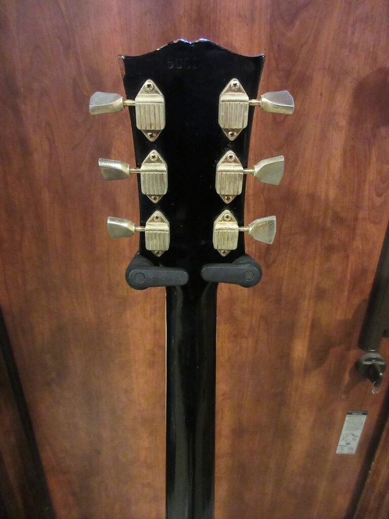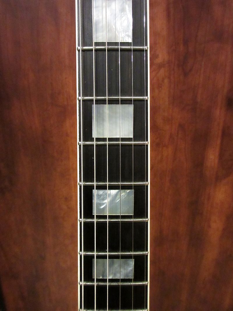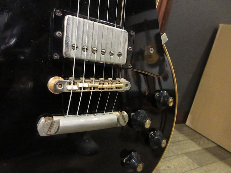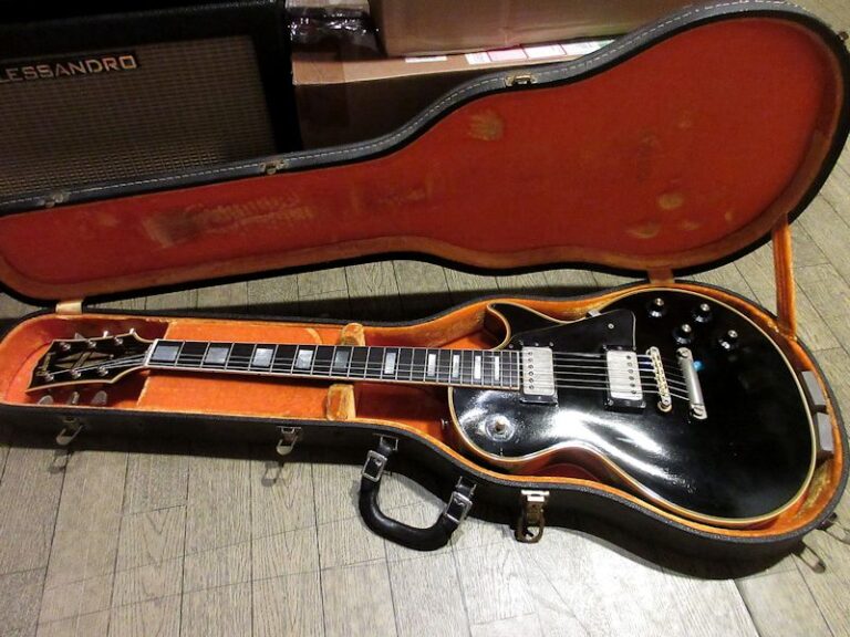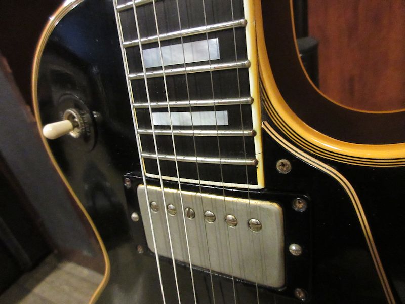 ジャズギターのマーケットに対応するソリッドギターとして開発され、1954年に登場したレスポールカスタム。SGシェイプを経て1968年にオリジナルのボディーシェイプにて復刻されますが、翌年1969年途中にはその後のレスポールカスタムの基本スペックとなる、ボディーが積層構造の所謂「パンケーキボディー」へと変更されます。1968年から1969年途中までの僅かな期間に生産されたボディーがワンピースマホガニーバック&メイプルトップの個体は、50年代のテイストを色濃く残すことから、同時期に再発されたP-90搭載のゴールドトップと共に現在でも高い人気を誇っています。今回入荷の1本は1969年製、3ピースマホガニーネック、ボディーはワンピースマホガニーバック&メイプルトップ仕様の人気スペック!フレット・ナットとバックパネルのビス数本以外はオリジナルコンディションをキープした価値ある個体です!プレイアビリティーも抜群で、以降の同モデルとはやはり異なるヌケ感と温かみのあるサウンドキャラクターが魅力的。ウェイトは約4.4kgと標準的でややスリムに仕上げられたネックシェイプも高ポイント♪サウンド・コンディション・ルックスの3拍子揃った‘69 Black Beauty、このチャンスをお見逃しなく!オリジナルイエローインナー(マリゴールドカラー)ハードケース付属(取っ手補修済み)