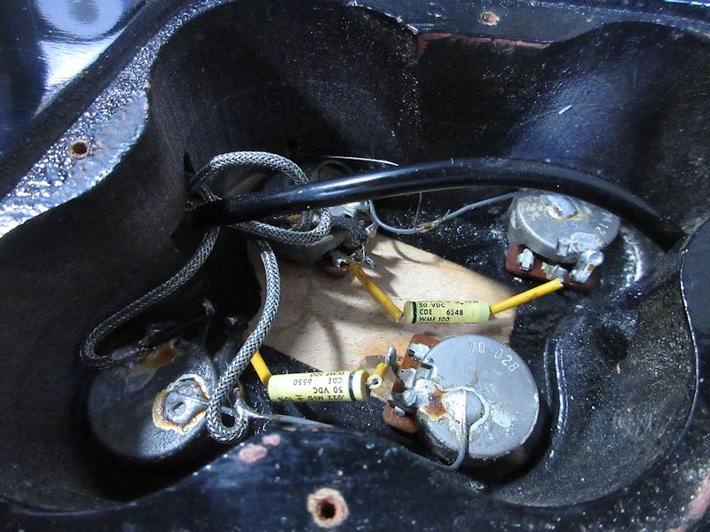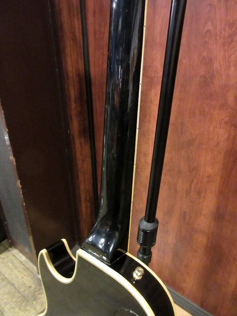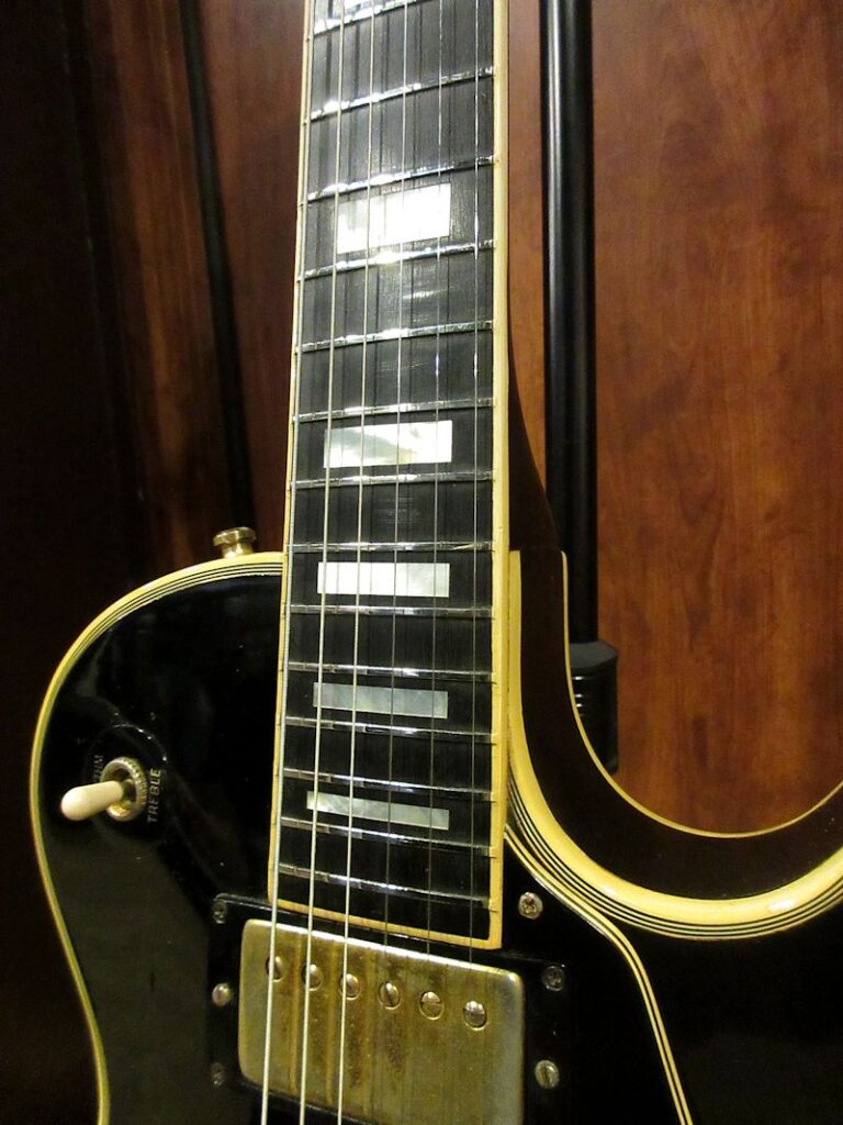 近年人気で品薄な状態が続いているマホガニーネック期の黒カスタム。ソリッドボディーのジャズギターとして開発されたモデルですが、この機種ならではのリッチでクリアなトーンはロックンロール / ハードロックの隆盛と共に生み出されたオーバードライブ・ディストーションサウンドとのマッチングも抜群で、クールなルックスも相まって瞬く間に人気モデルとなりました。本機は1974年製、お探しの方も多いマホガニーネック期の1本。非常にオリジナル度の高い個体で、パーツはストラップピンがロックピンに交換されている程度で、木部リペア等もなく、フレット・ナットまでオリジナル。深く歪ませても音の芯がしっかりと残り、モタることなく鳴りきってくれる戦闘力の高い黒カスタムです!約4.6kgとこの時期のカスタムとしては平均的な重量、持った感じはもう少し軽く感じるウェイトバランスの良い個体です。当店でも常に人気の高いマホネック期のカスタム、良い個体の出物も年々少なくなってきておりますので、この機会に是非Getなさってください!汎用ハードケースが付属致します。