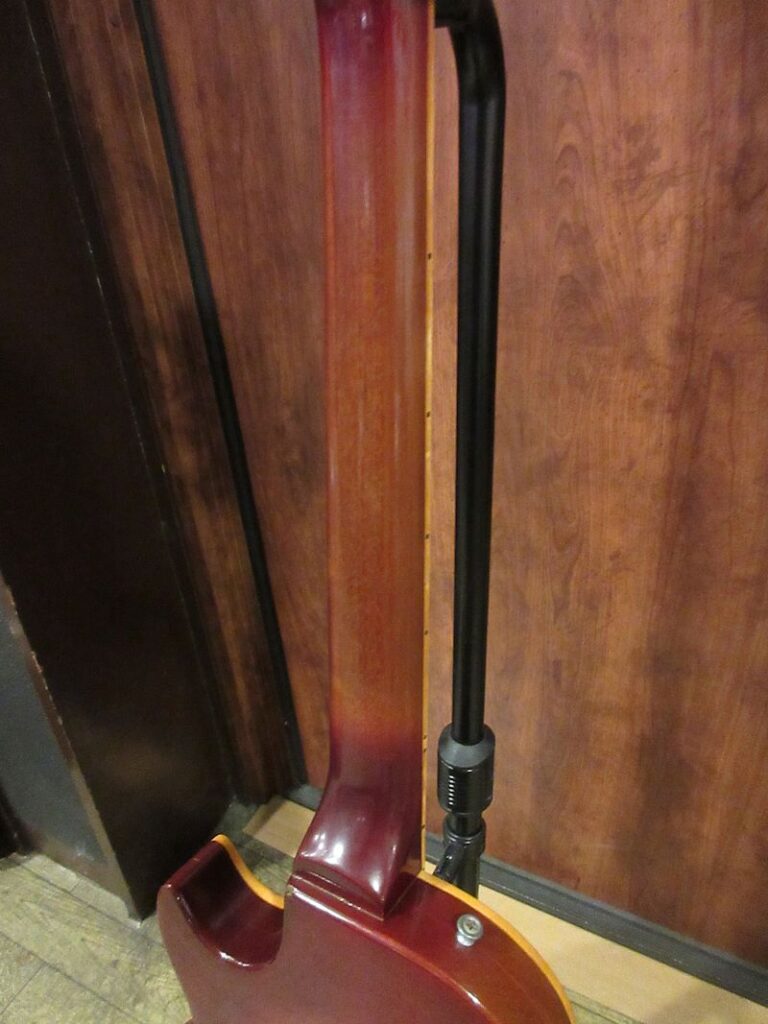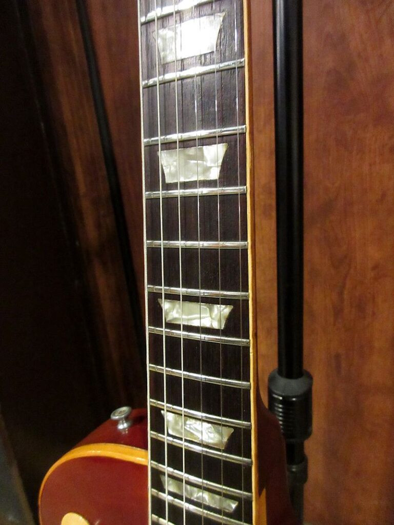 1969年に登場したLes Paul Deluxe。復活したオリジナルシェイプのレスポールモデルとしては記録的なセールスを誇る人気機種として1980年代初頭まで生産が続けられました。近年ではフェンダーをメインで使用されている方からも、クリアで輪郭のはっきりしたトーンが支持されているこちらのモデル。本機は1975年製、マホガニーネック最終期の個体!コントロールノブが交換されている以外はアッセン類を含め、オリジナルコンディションをキープしており、ウェイトも4.37kgとこの時期としては軽量な1本。ウッディーかつウォームでありながら、ミニハムバッカーらしいシャープさを兼ね備えたナイスサウンドの個体です!プレーントップの個体が多いDeluxeですが、本機は3ピーストップのセンター部分には見事なフレイムが確認できるのも高ポイント♪弾いてよし、眺めてよしのマホガニーネックのデラックス、狙い目の1本をこの機会に是非どうぞ!パープルインナーのオリジナルハードケースが付属いたします。