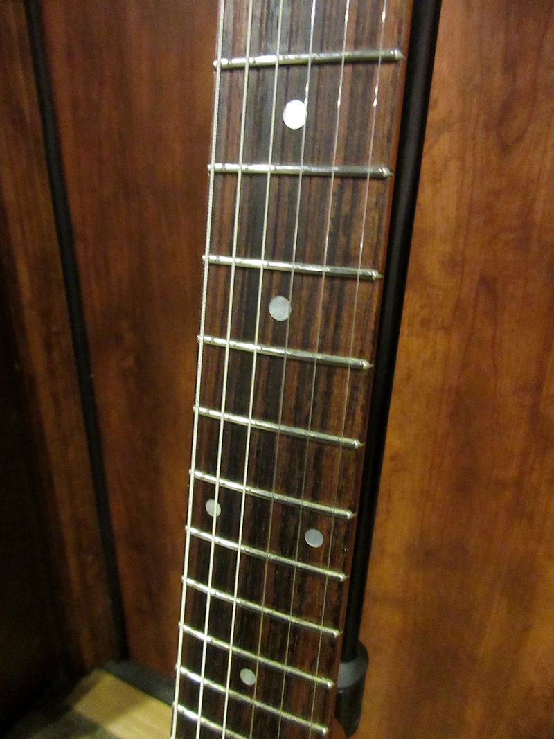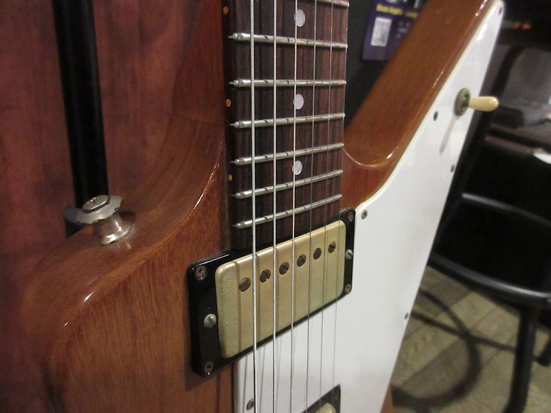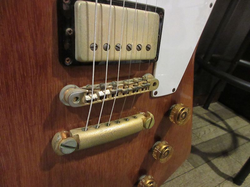 1976年製製Explorerのファーストリイシュー初年度の個体でマホガニーネック&ボディーにローズウッド指板、ゴールドハードウェアにストップテイルピース仕様。ピックアップがSeymour DuncanのAntiquityに交換され(1基は導通が確認できませんが、オリジナルピックアップ2基付属)その他、ピックガード、ストラップピン(エンド部は位置変更歴有り)POT3個、ジャックプレートなどパーツ交換箇所が確認できますが、木部リペアはございません。良質で大ぶりなマホガニーボディーがもたらす乾いた板鳴りはコリーナボディーのExplorerとはまた違った魅力的なトーンキャラクターを有しており、6105サイズのフレットでリフレットもされておりますので、オリジナルのワイド&ローフレットと比較すると格段に演奏性が向上しているのも高ポイントです!昨今驚くほど価格が高騰しているこのモデルですが、前述の通りパーツ交換歴等が見受けられるためお求めやすいプライスでのご提供!しっかりヴィンテージトーンを楽しめるPush Push!の個体です!ウェイト3.84kg、オリジナルハードケース付属。