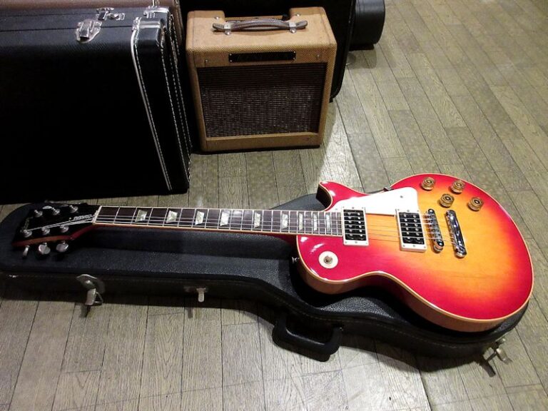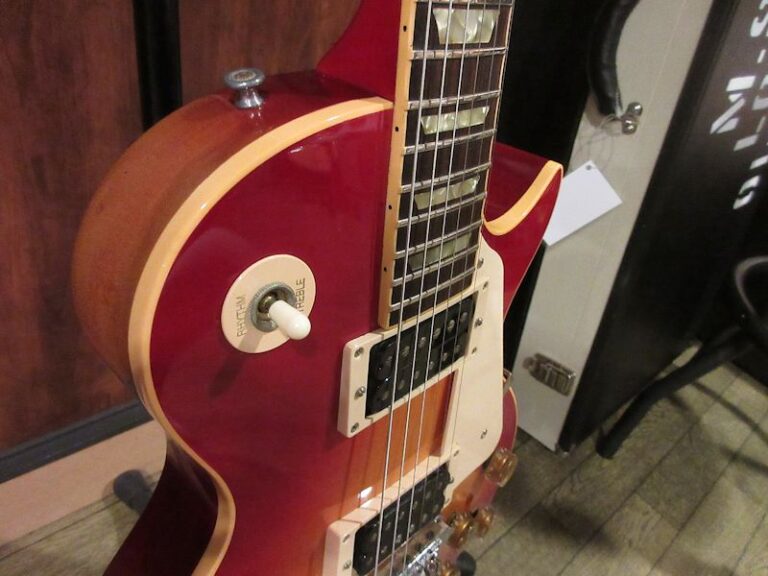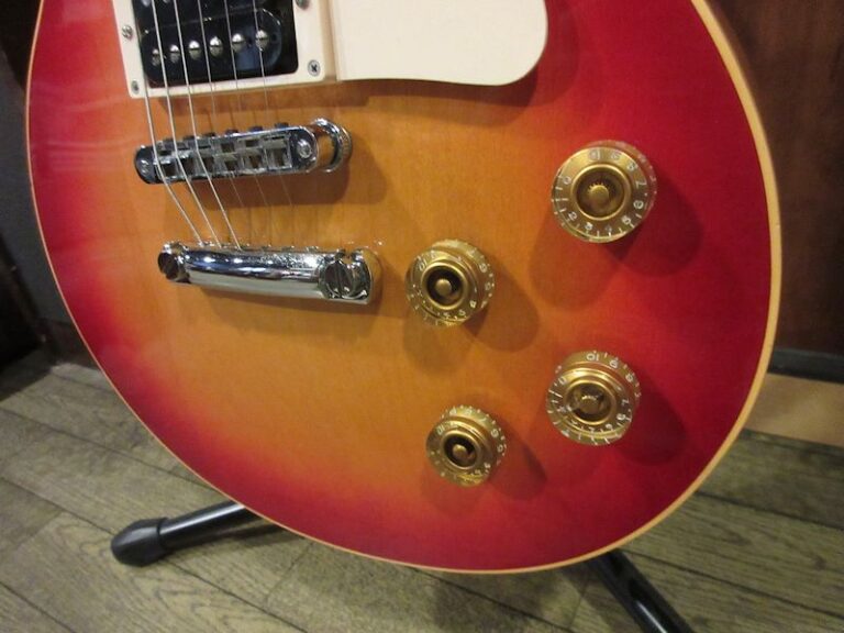 フルサイズハムバッカー搭載のレスポールスタンダードを求めるマーケットの声に応え、1976年に再発されたスタンダードモデル。再発初期はパンケーキボディー、メイプルネックの仕様でしたが、Gibson社は徐々にオリジナルスペックへと回帰していきます。本機は1980年製のLes Paul Standard、ネック材はメイプル、ボディーバックはワンピースマホガニーの仕様で、意外に短い期間しか存在していないスペックの個体です。この時期の鮮やかなチェリーサンバーストカラーが印象的で、塗装面の状態もとても良いコンディション。チューナーがGrover103に、その他エスカッションやピックガードなどのパーツ交換はあるもの、ピックアップは近年再評価の声が高まるTim Shaw PAFを搭載。ワンピースマホガニーボディーバックと剛性感の高いメイプルネックの組み合わせにより、抜群の太さとヌケ感を誇るクラシックロックサウンドを存分にお楽しみ頂けます!ウェイトもこの時期としては比較的軽量な4.45kg、サウンドクオリティーからすれば最早お買い得感しか感じないEarly 80’s Les Paul Standard、とても美しいレスポールでルックス的にもオススメの1本です♪オリジナルハードケース付属。