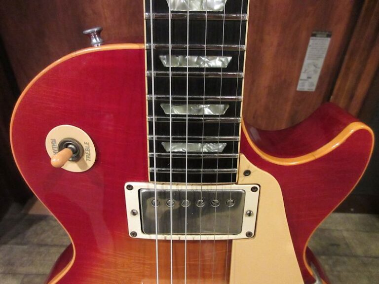 1970年代中期から後期にかけて高まりつつあったヴィンテージリイシューを求める市場の声に応え、Gibsonが発表した「Heritage 80」モデル。50年代のオリジナルレスポールモデルと同様の木材構成で製作されたこのモデルを皮切りに、より細部にこだわった、Leo’s VintageやGuitar Traders、Jimmy Wallaceなどのショップオーダーリイシューが登場します。そういった状況の中、日本の代理店が日本市場限定モデルとしてオーダーし、誕生したのが本機「59 Vintage」です。アウトラインやスペックは同時期のショップオーダーリイシューと同等ながら、指板にエボニー材を用いている点がポイントで、リッチに響くクリーントーンと滑らかなドライブサウンドは、同じ指板材を用いるカスタムとはまた異なった魅力的なトーンを持っており、マニアの中でも人気の高いモデルです♪キャパシターがVintageのSparague製に、その他ABR-1のリテイナーやビス数本が交換されておりますが、この時期のモデルとしては軽量なウェイト4.12kg!トップ全面に揺らめくフレイミィな杢目と鮮やかなサンバーストカラーは見ているものを飽きさせません。近年再評価の高まりと共に流通量の減っているPre Historic Reissue、オススメの1本です♪オリジナルブラウンハードケース付属(ハンドル取っ手交換)。
