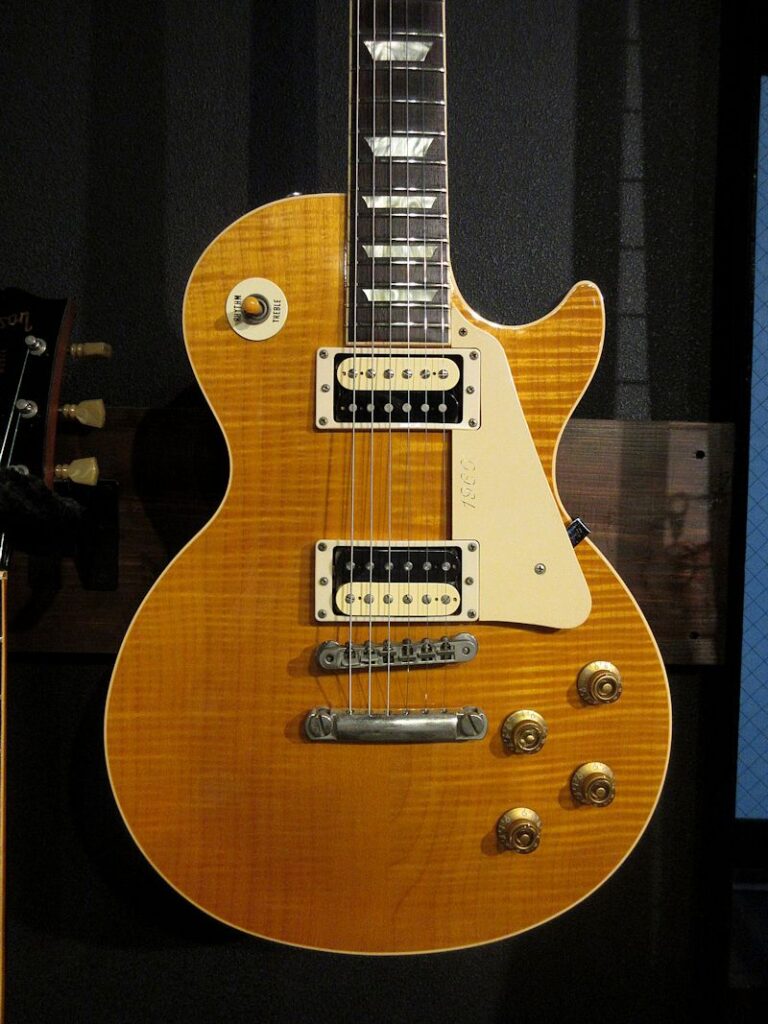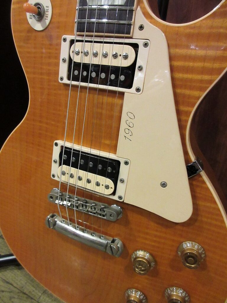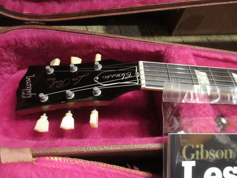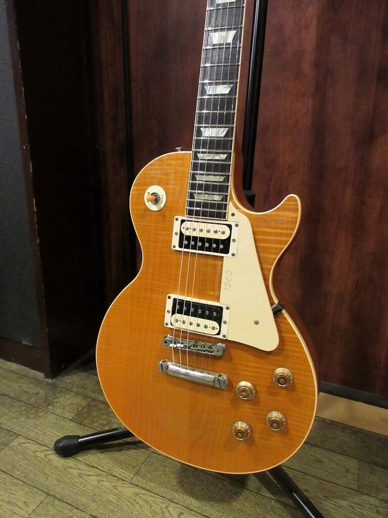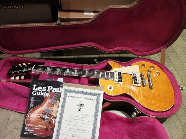 レギュラーラインのレスポールモデルの上位機種として1991年に誕生した「Les Paul Classic」モデル。1991年から1997年頃まで生産されていたモデルですが、プレイアビリティーの高いスリムテーパーグリップや、出力の高い 496R / 500Tの組み合わせは今も尚評価が高く、その後も再生産されている人気のモデル。本機は生産初年度にあたる1991年製の個体!モチロン初期生産品にだけ見られる「Les Paul Model」ロゴ表記の1本です。Trans Amber Finishはトップを覆う細やかなフレイムとの相性抜群、杢目をより際立たせる美しいカラーリングです。チューナーが近年のKluson製に、キャパシターがVintageのCornell Dublier製に、テイルピースがアルミ製の物へと交換されていますが、フィニッシュを含め全体的なコンディションは非常に良好です!オリジナルのゼブラボビン496Rと500Tピックアップは歪ませてもしっかり芯の残るサウンドで、約30年以上を経た木の鳴りをしっかりと感じさせてくれます!本機は書籍「Gibson Les Paul Guide」に掲載された個体で、過去にLAの有名ギターショップ「Norman’s Rare Guitars」で販売された際に発行されてサーティフィケートも付属致します。ウェイト3.96kg、オリジナルブラウンハードケース付属。