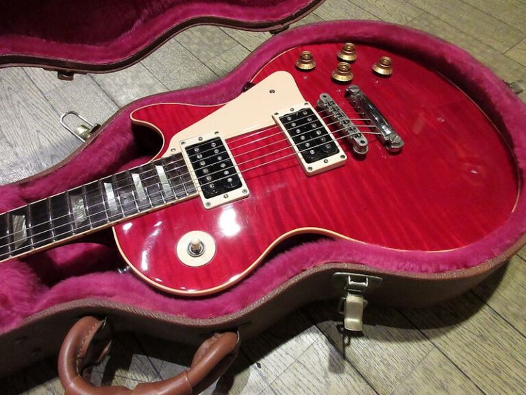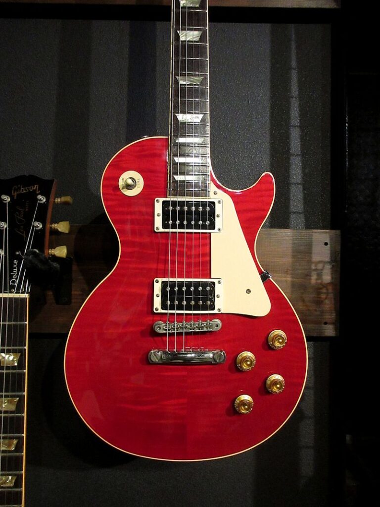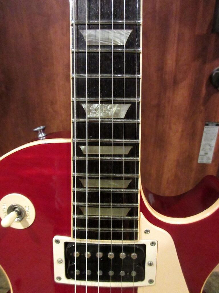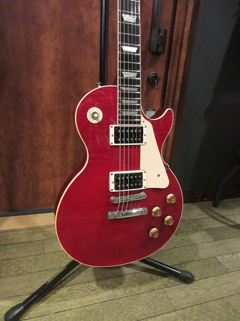 レギュラーラインで生産されていたレスポールモデルの上位機種として誕生したLes Paul Classicシリーズ。今回入荷の1本は「Les Paul Model」ロゴの初期生産品、しかもタマ数の少ないTranslucent Redフィニッシュの1本!Premium Plus並みのウェイビーなフレイムトップにヴィヴィッドなレッドカラーが映えまくる美麗個体!ピックガードのみ交換されておりますが、それ以外のパーツ類はオリジナルをキープしており、全体的なコンディションもClean!ピックアップはオリジナルのオープンハムバッカー、496Rと500Tを搭載。Classicシリーズの特徴でもあるスリムテーパーネックの高い演奏性もポイントです。しかも本機はこの時期の個体にしては非常に軽量な3.9kg!Classicシリーズ初期のTranslucent Red Colorは中々見つかりませんので、お探しの方はこの機会に是非どうぞ!オリジナルブラウンハードケース付属。