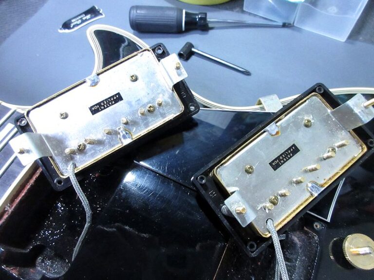 今回入荷の1本は近年「Pre-Historic Reissue」と呼ばれ、人気が非常に高まっている時期にあたる1993年製のReissueモデル。1957年製 Les Paul CustomのReissueで、実用性を考慮した2PU仕様、マホガニーボディー&ネック、エボニー指板仕様の1本。本機は「Custom Shop Edition」デカールが貼られた個体で、翌年から正式にスタートするHistoric Collectionへの系譜を感じさせる価値ある個体です。ピックアップは57Classicを搭載、POTやキャパシターを含め、オリジナルをキープしており、全体的に非常にクリーンなコンディションをキープしております!オリジナルのフレットに減りはほとんど見受けられず、トラスロッド余力あり、ネックはストレートな良い状態です。マホガニーボディーのカスタムらしいウッディーな鳴りでありながら、カスタムらしい反応の速さとキレを兼ね備えた良個体!歪ませた際のヌケの良さはこのモデルでしか味わえません♪現在と比較すると生産本数も非常に少なく、日本国内においても限られた本数しか流通していなかった時期の個体、製造後30年を経た今、ネオ・ヴィンテージとも言える本機。ウェイトはHistoric Collectionスタート後にモデル毎のトータルウェイトレンジが標準化される前でもあり、カスタムモデルとしては平均的な4.6kgと軽くはありませんが、それを補って余りある魅力的なサウンドを持った1本です!オリジナルブラウンハードケース付属。