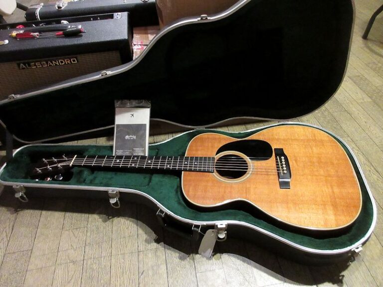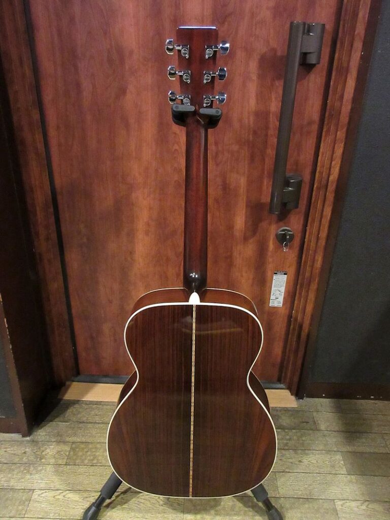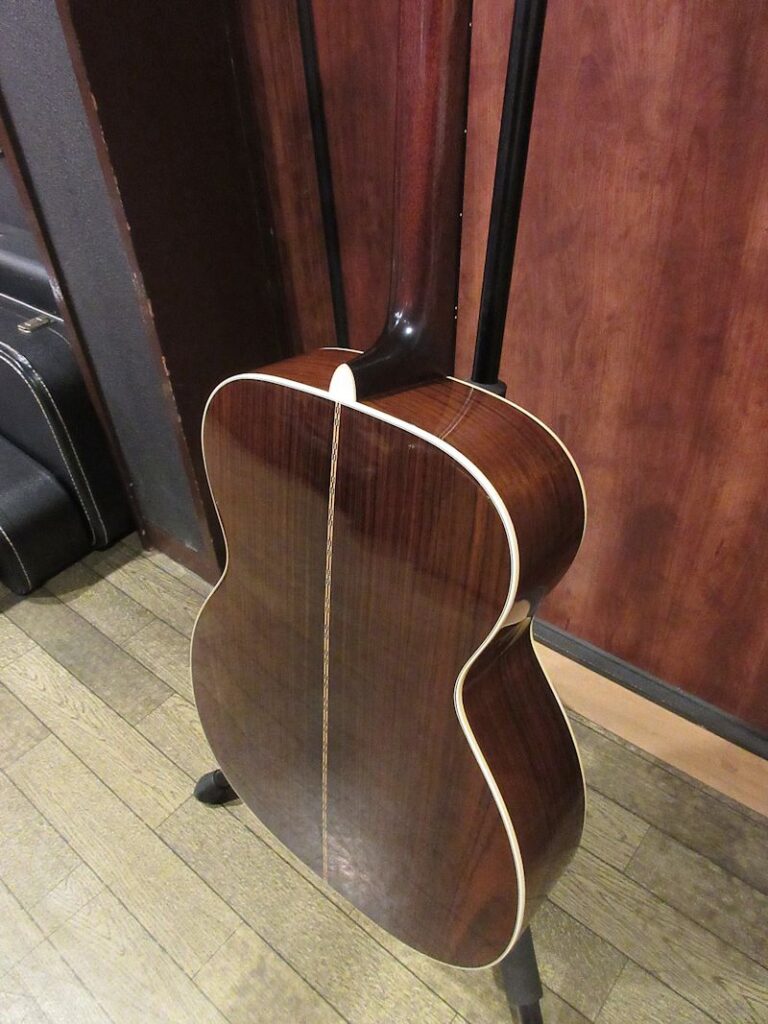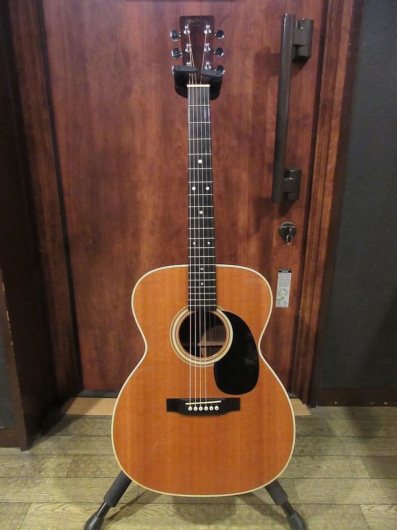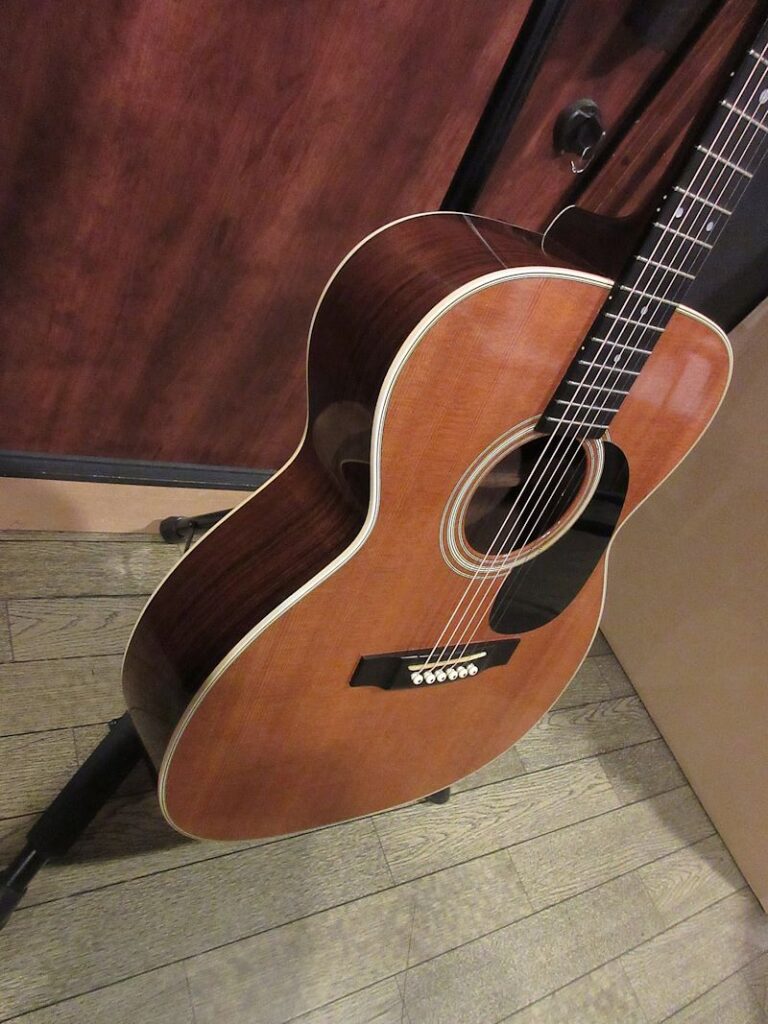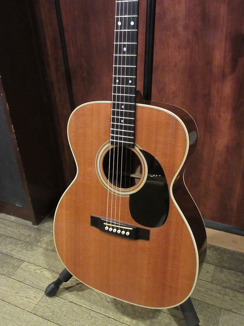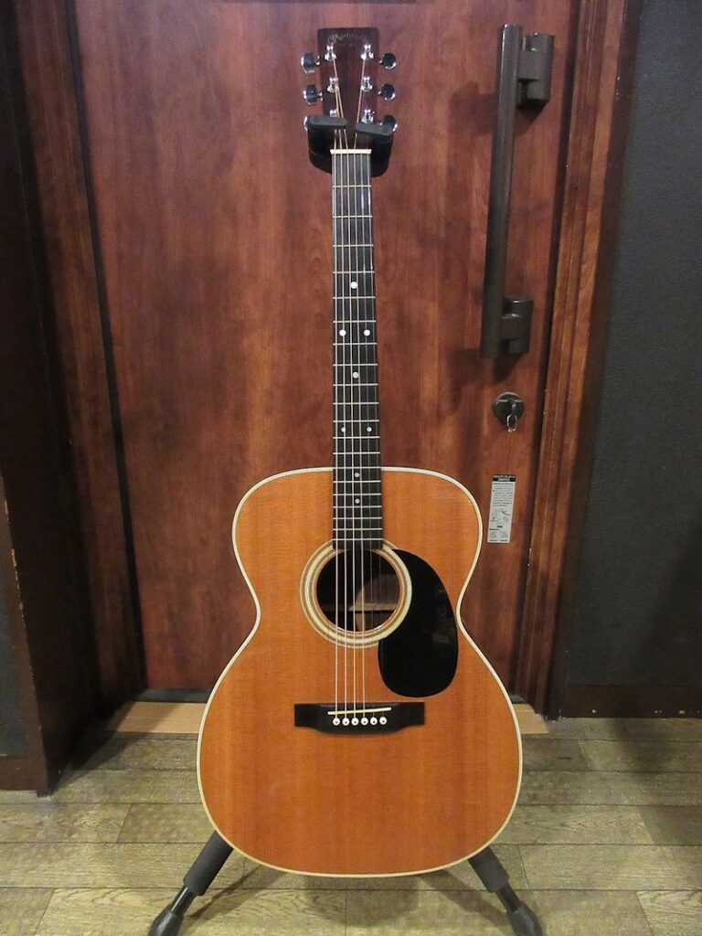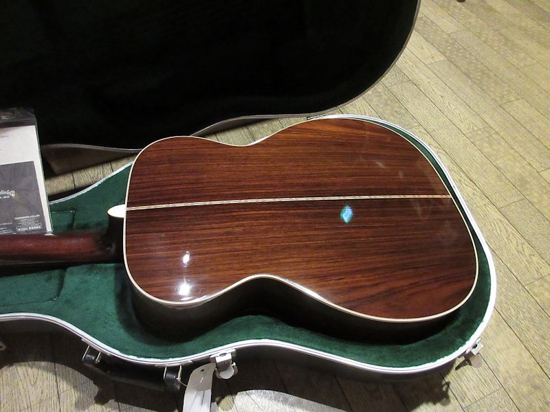 数あるMartinギターのラインアップの中でも長い歴史を誇る000モデル。発表当時は大きなボディーサイズを持ったモデルでしたが、その後のミュージックシーンの変化と共に、より音量の大きなギターが求められるようになり1930年代初頭Dサイズのモデルが誕生します。それと共にスモールサイズのモデルは生産本数が減少しますが、1992年に発表されたEric Claptonのアルバム「unplugged」で000サイズのモデルがフューチャーされていたことから一躍大人気機種として復活します。本機は1994年製の1本!製造後約30年が経過し、小傷は散見されるものの、ノークラックの美品!しかもこの時期オプションで製作されていたSQロッドのモデルです。ネックコンディションは大変良く、12フレット上の弦高は1弦側約1.9mm、6弦側約2.4mmでプレイアビリティーは最上級!ローズウッドサイド&バックの28らしい、バランスの良いクリアで澄み切ったトーンに加え、丁寧に弾き込まれ、箱鳴りのしっかりした良い個体に仕上がっております♪現在の新品売価を考えても絶対のお買い得品、昨今中々出てこない90年代初頭の1本、オススメの1本です!オリジナルブラックハードケース付属。