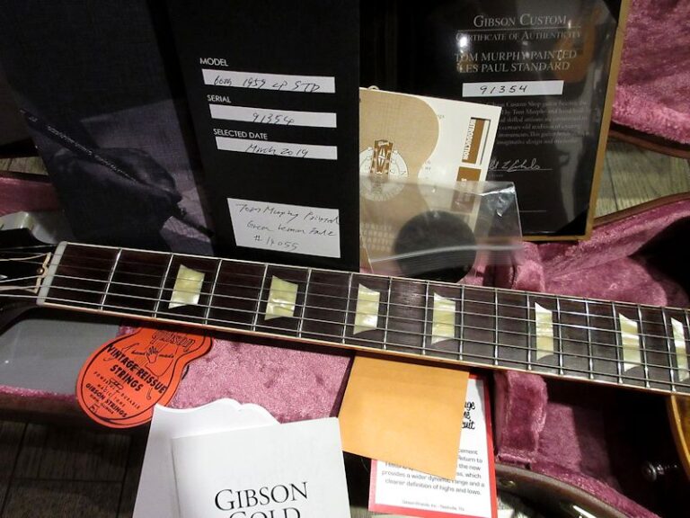 1959年製サンバーストレスポール誕生から60周年を記念し、2019年に発売されたアニバーサリーモデル。この年のモデルには60周年を記念するメダリオンプレートが付属し、カスタムバッカーピックアップがヴィンテージPAFに準じたアンポッテッド仕様に変更されるなど、細部にわたり更なるブラッシュアップが図られました。今回入荷の1本はその60周年記念の中でも一際注目度が高かった「Murphy Paint」モデル!現在はカスタムショップのマスター・アルティザンとして、Murphy Labを率いるTom Murphy氏。Historic Collection誕生時からその開発に携わり、また塗装やエイジングのエキスパートである氏が直接ペイントを施したプレミアムな個体です!トップのフレイムもワイルドかつGreen Lemon Fadeカラーが映える抜群の杢目で、角度によって様々な表情を見せるナイスな1本。演奏に伴うプレイウェアや小傷こそ散見されますが、サウンド、演奏性共に良い個体です。近年は自らフィニッシュに携わることがなくなった氏の手掛けた1本をこの機会に是非!ウェイト4.01kg、認定証、ハンドセレクト認定書、カスタムショップ製ブラウンケース付属。