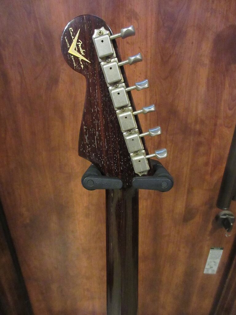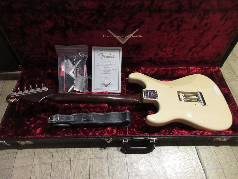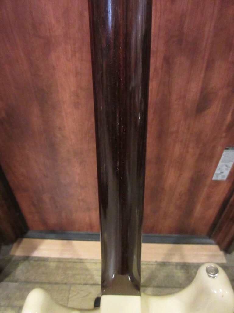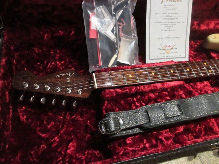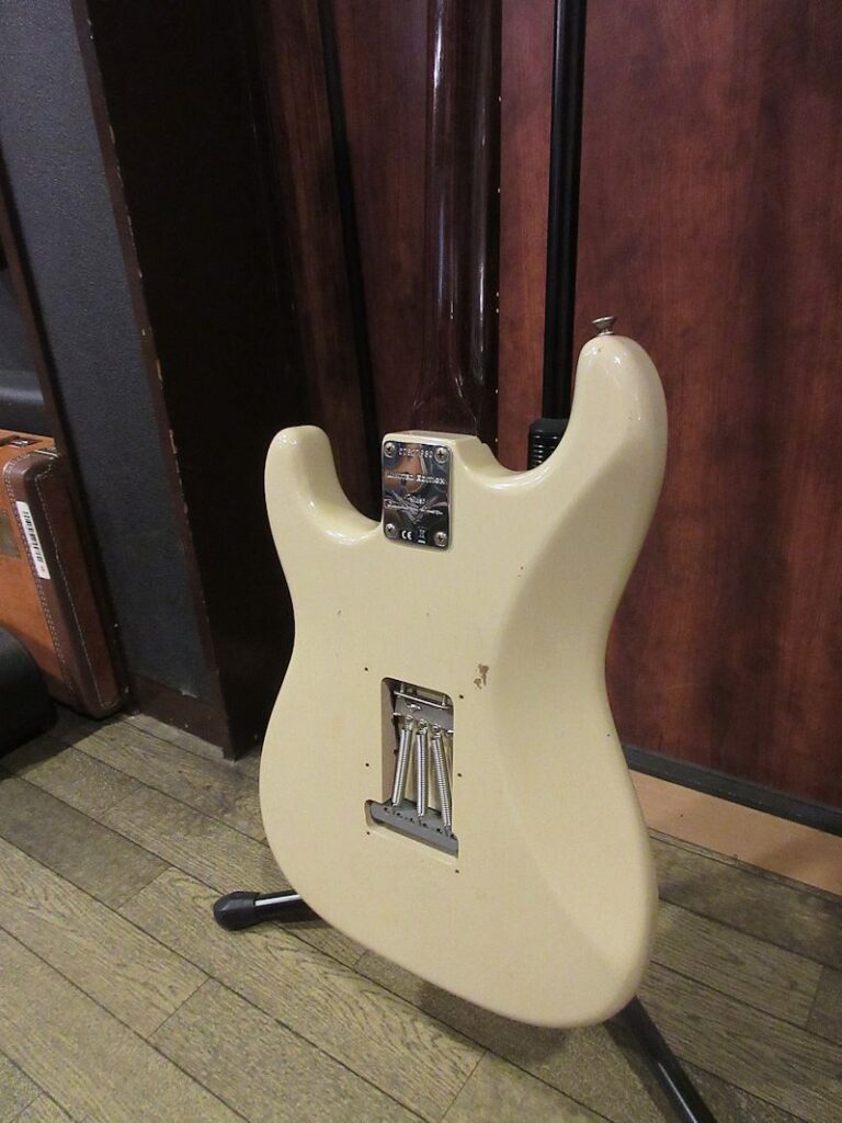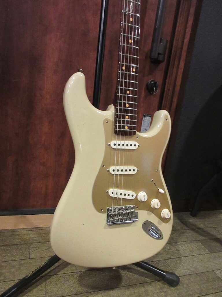 Norman’s RARE Guitars Bookに”First rosewood neck strato”として紹介されているExtremely RAREな1957年製のストラトキャスター、本機はその幻とも言えるローズウッドネック仕様のストラトキャスターをFender Custom Shopが限定生産した貴重なモデル!デザートサンドカラーのアルダーボディーにアノダイズドピックガードが組み合わされ、フロントとミドルにFAT50’s、リアにTexas Specialのハンドワウンドピックアップを搭載。ネックは57年スタイルのソフトVシェイプ、9.5Rラディアスの指板に6105フレット仕様の近年最もポピュラーとも言える仕様で仕上げられています。Journeyman Relicの程よい経年感とマッチする、澄んだクリーントーンにドライブさせてもしっかりと芯の残るトーンはこのマテリアル構成ならでは!ブラジリアンローズウッドは言うに及ばず、インディアンローズウッドも良質な材が枯渇しつつあるとも言われる昨今、今後同様のモデルの製作が難しくなるのは想像に難くありません。コンディション良好な希少な個体、是非チェックしてみて下さい。ウェイト3.53kg、認定書類、カスタムショップ製オリジナルトーレックスケース付属。