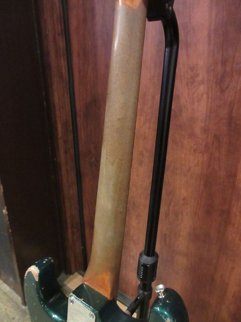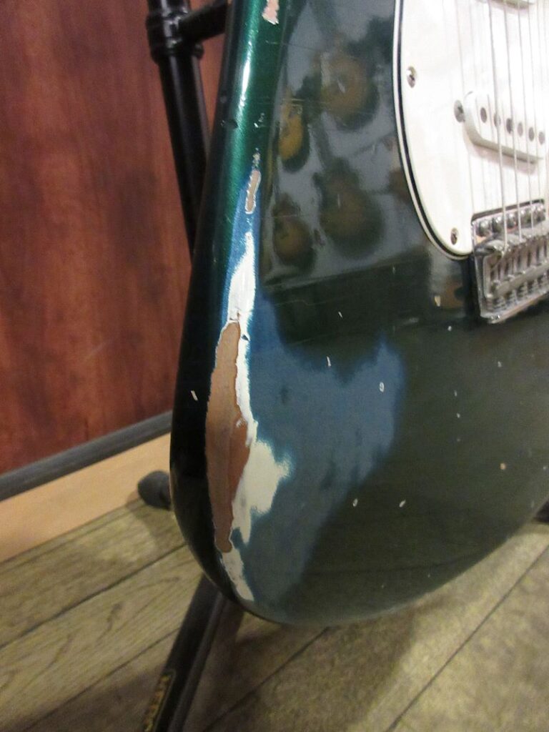 本機は1965年製StratocasterのネックとBizen Works製ストラトキャスターボディーを組み合わせたコンポーネントストラト!軽量なアルダー材ボディーには大阪に居を構えるブランド「八弦小唄」の手による超絶クールなオールラッカーフィニッシュ&レリックワークが施されており、いやはやぶっちぎりの格好良さです!1965年ネックの指板はブラジリアンローズウッド、リフレット(ミディアムジャンボサイズ)が施され弾き心地も抜群の1本です。パーツ類はチューナーも含めてほぼリプレイスメントパーツで組み上げられており、ピックアップはモデルは不明ですがDimarzio製を搭載。オリジナルトランジションロゴの1965年製ネックだけと侮るなかれ、アタック感の活き活きとしたハリのあるサウンドはボディー材とのマッチングの良さを感じさせてくれます。カスタムショップ製のユーズド並みのプライスで手に入る1本、お早目のお問合せお待ちしております!ウェイト3.13kg、汎用ギグケース付属。