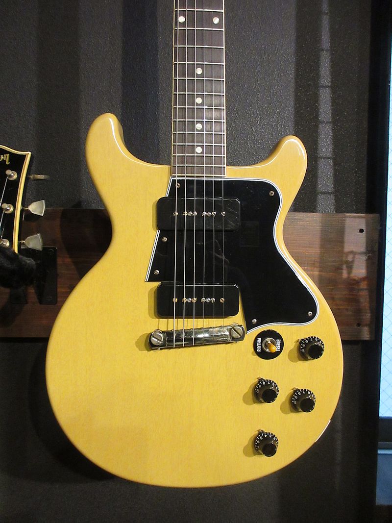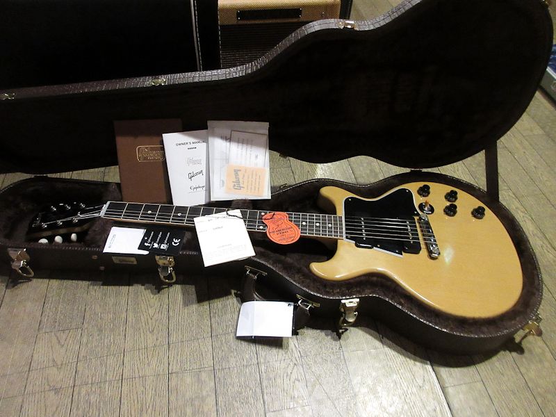 Les Paul Juniorの上位機種として1955年に誕生したLes Paul Special。P-90を2基搭載、ネックにはバインディングが施され、ヘッドの突板にはホーリーウッドが使われるなど、コストパフォーマンスの高い機種として人気を博し、1959年途中にはダブルカッタウェイシェイプへとモデルチェンジされました。本機はカスタムショップが1960年製のSpecialを再現したモデルで、この時期のピックガードの内側に収まるよう配されたピックアップレイアウトをはじめ、ネックシェイプやカラーリングなど非常に高い完成度を誇る1本です。VOSフィニッシュで仕上げられたTVイエローカラーのマットな雰囲気も良く、フロントピックアップのヌケの良さ、リアのドライブ感溢れるトーンは上位機種にも引けを取らぬサウンドクオリティー!コンディションもブランニューと言っても過言ではないほどで、新品購入をご検討の方にもオススメです♪アリゲーター柄チップボードにインスパイアされたと思われるハードケースの外装にもグッと来ますね!ウェイト3.34kg、認定証類、オリジナルハードケース付属。