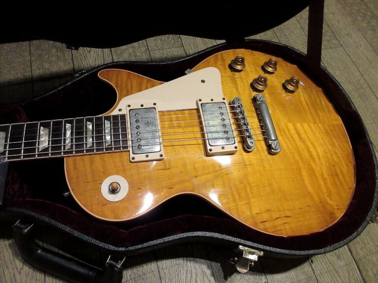 2009年に行われたモデルチェンジにて、ネックシェイプの見直しなど、細部がブラッシュアップされたHistoric Collection。本機は2010年製、58モデルがプレーントップで販売されていた時期にFigured Topが採用されたリミテッドモデル。フレック入りまくり、雰囲気タップリのトップにレモンバーストのコントラストがビューティフルな1本!ピックアップは後年のバーストバッカー2&3の組み合わせに変更され、硬質なトップ材とのマッチングによるアタッキーなトーンが素敵です♪Area59製ピックアップカバー、Montreux製のチューナーマウントなどのグレードアップが施され、ABR-1ブリッジ(リテイナーは外されております)、スタッドアンカー、ブリッジのサムホイールがやや以前のHistoricパーツに、ストラップピンはロックピンタイプへと交換されております(ピックアップカバー、チューナーはオリジナル付属)。音質面はもとより、現場仕様の使いやすさにもこだわった1本。3.92kgと軽量なウェイトも魅力、美しいフレイムトップに勝るとも劣らない、リアルバーストライクな表情を見せるトップの1本!お問い合わせお待ちしております♪認定証類、カスタムショップ製ハードケース付属。