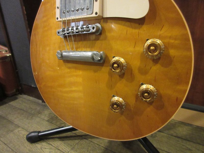 2009年に行われたモデルチェンジにて、ネックシェイプの見直しなど、細部がブラッシュアップされたHistoric Collection。本機は2010年製、58モデルがプレーントップで販売されていた時期にFigured Topが採用されたリミテッドモデル。フレック入りまくり、雰囲気タップリのトップにレモンバーストのコントラストがビューティフルな1本!ピックアップは後年のバーストバッカー2&3の組み合わせに変更され、硬質なトップ材とのマッチングによるアタッキーなトーンが素敵です♪Area59製ピックアップカバー、Montreux製のチューナーマウントなどのグレードアップが施され、ABR-1ブリッジ(リテイナーは外されております)、スタッドアンカー、ブリッジのサムホイールがやや以前のHistoricパーツに、ストラップピンはロックピンタイプへと交換されております(ピックアップカバー、チューナーはオリジナル付属)。音質面はもとより、現場仕様の使いやすさにもこだわった1本。3.92kgと軽量なウェイトも魅力、美しいフレイムトップに勝るとも劣らない、リアルバーストライクな表情を見せるトップの1本!お問い合わせお待ちしております♪認定証類、カスタムショップ製ハードケース付属。