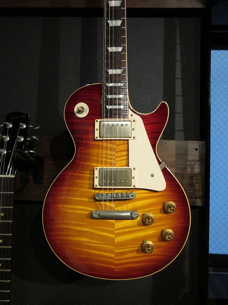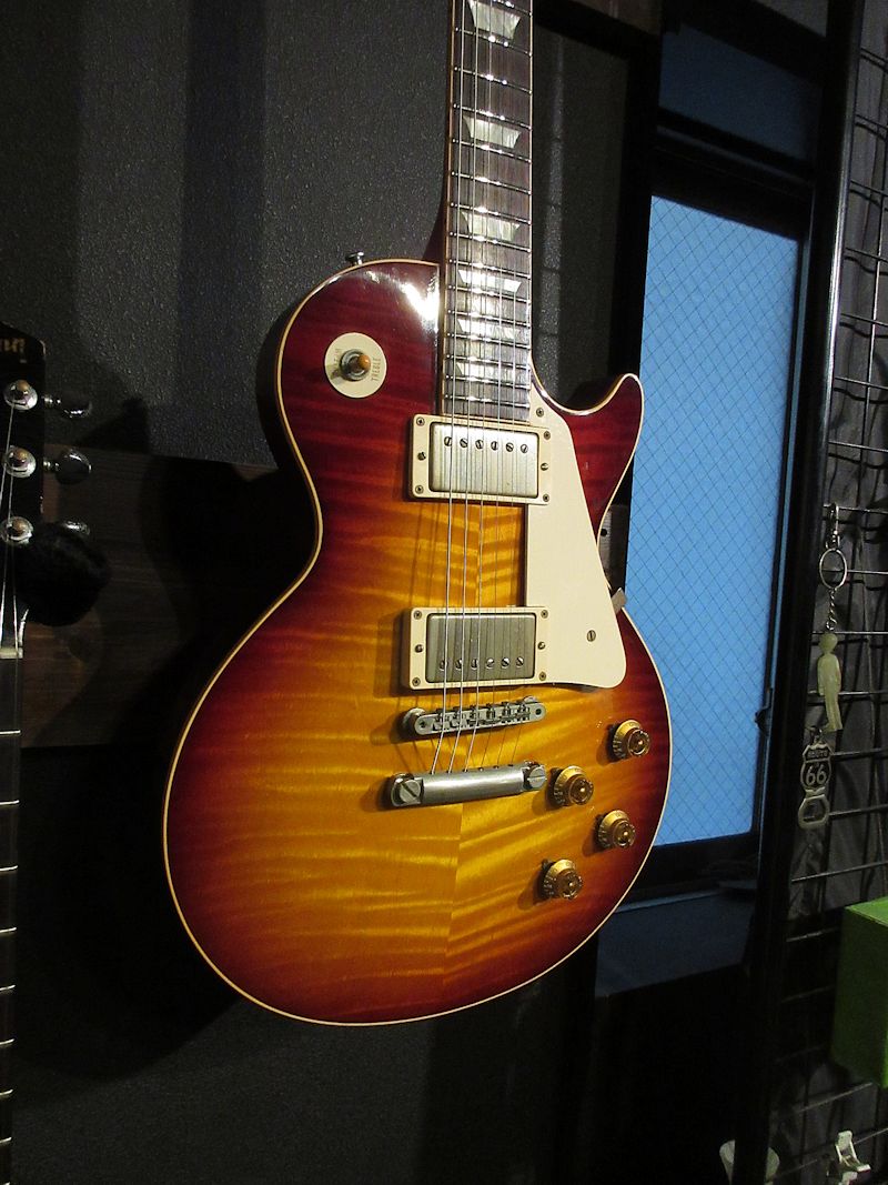 2009年に施された、ネックシェイプの形状見直し、ナイロンナットやピックガードマウントステーのマイナススクリュー採用など、細かな点でのブラッシュアップが踏襲された2012年の1959モデル。特筆すべきはトップ全面を覆うワイドで立体的なシーガルフレイムトップ!鮮やかなサンバーストカラーと相まってド迫力のルックスに仕上がった個体です!VOSフィニッシュですので、パーツのエイジングなどが施されていますが、目立つ傷もないコンディションの良い1本!翌年に行われるモデルチェンジ前のヒスコレも未だ根強い人気を誇っており、中古での流通量も減少しつつあります。Duane Allmanの所有していたサンバーストレスポールを髣髴とさせるナイストップの1本、お見逃しなく!ウェイト4.06kg、認定証類、カスタムショップ製ブラウンケース付属。